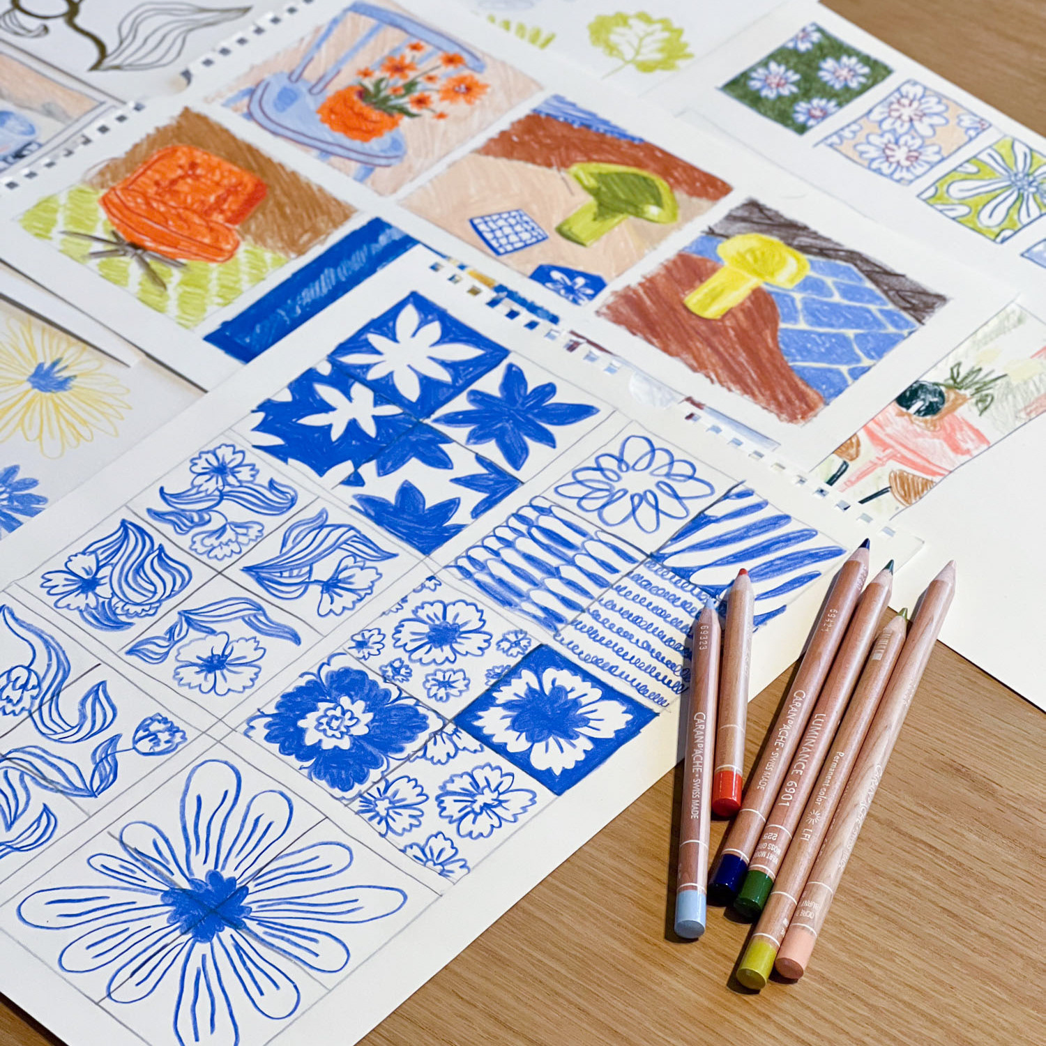 So I went through my camera roll and put all the photos I took in the past of things, places, colors, etc. into one folder. If I don’t know what to draw, now I can just open the folder and pick the picture that speaks to me the most and use my Caran d’Ache Luminance coloured pencils to create small 8x8cm versions.