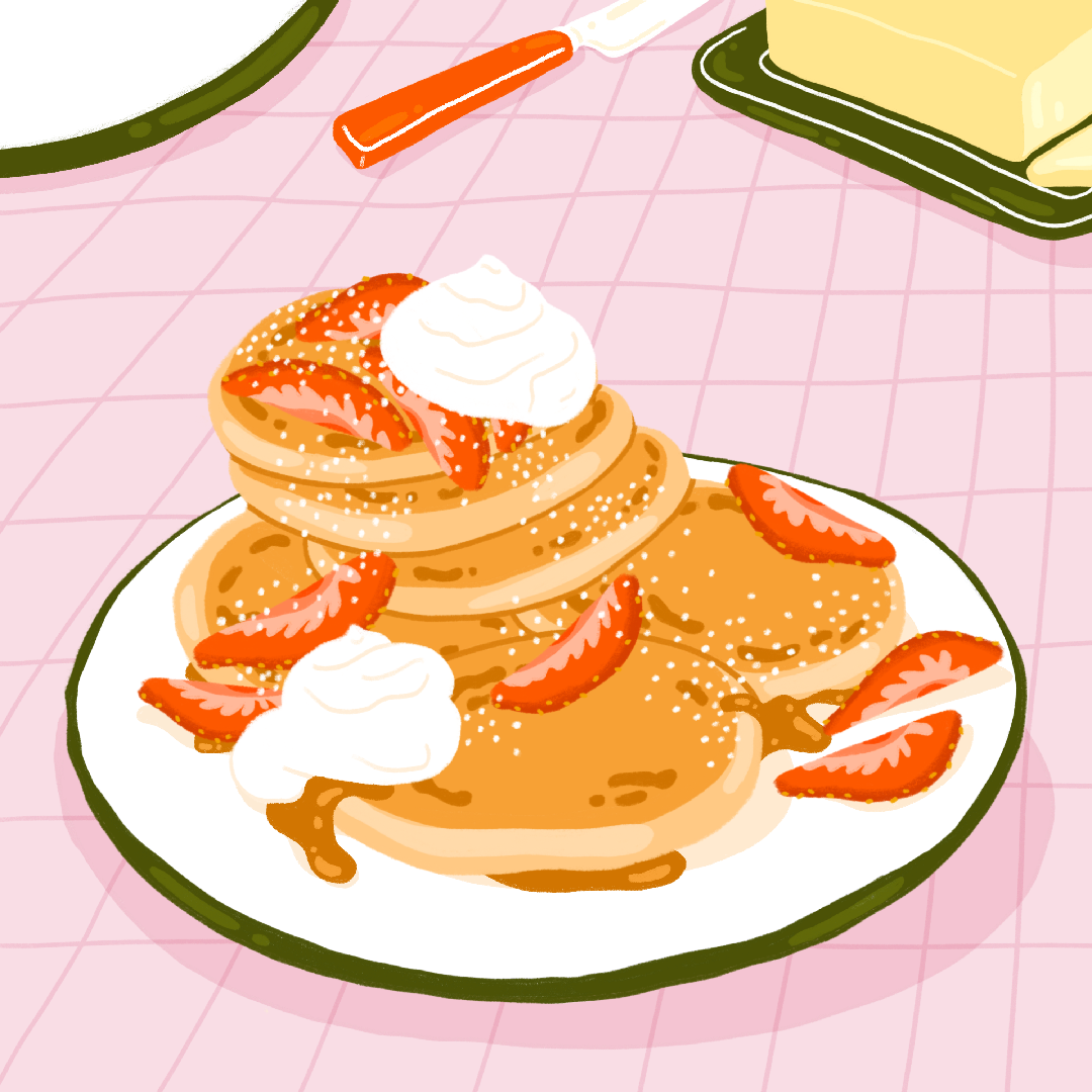 Having ADHD I got a few meals that I can always eat. Some delicious pancakes with cut strawberries on top are definitely one of them.